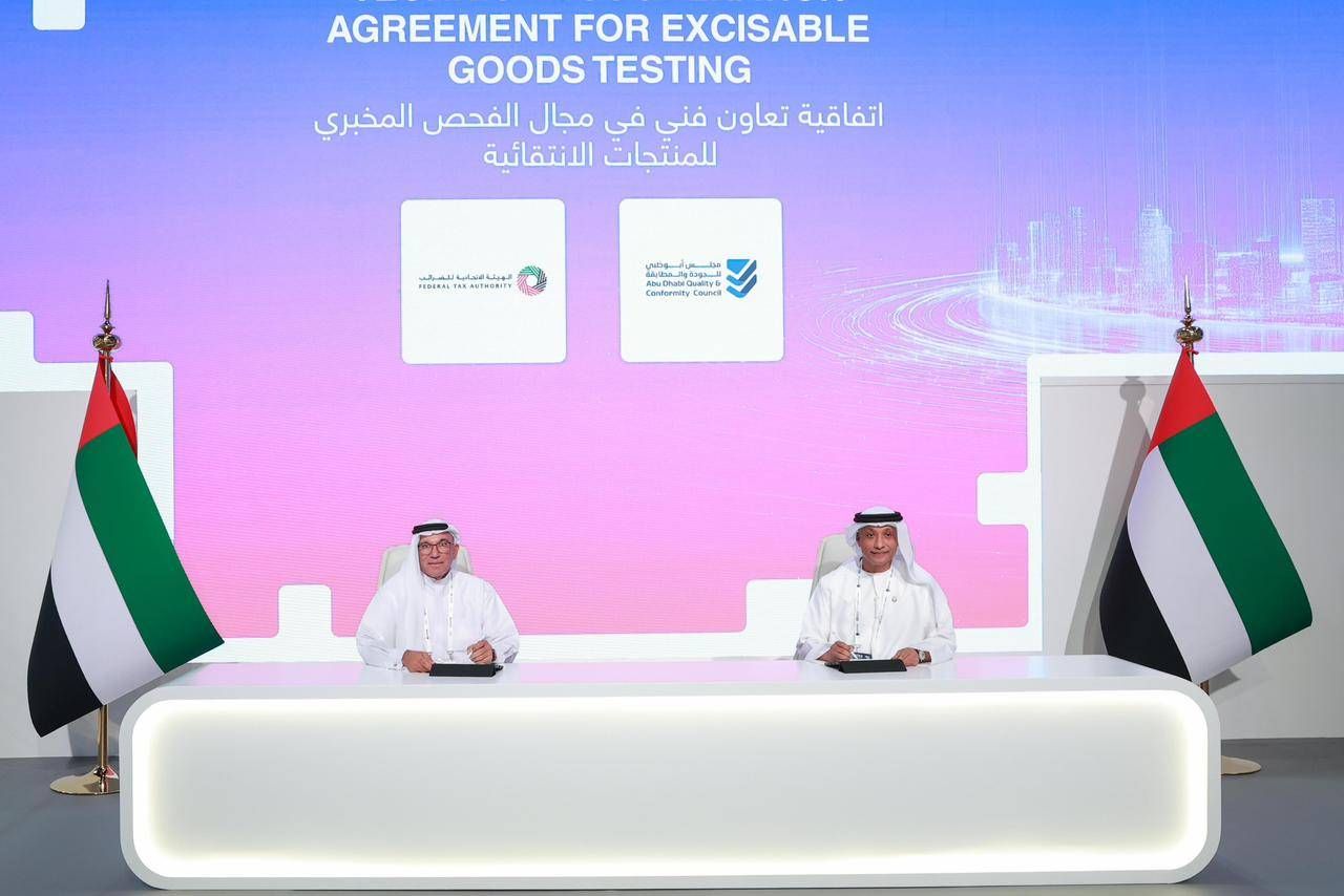 وقع الاتفاقية كل من خالد علي البستاني، مدير عام الهيئة الاتحادية للضرائب، والمهندس فهد غريب الشامسي، الأمين العام لمجلس أبوظبي للجودة والمطابقة بالإنابة، على هامش فعاليات معرض «جيتكس جلوبال 2025» في مركز دبي التجاري العالمي.