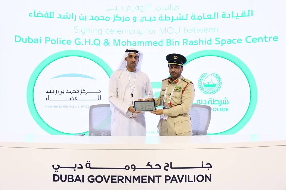 وقعت القيادة العامة لشرطة دبي، ومركز محمد بن راشد للفضاء، مذكرة تفاهم بهدف تعزيز التعاون في مجالات البحث والتطوير والتطبيقات التقنية ذات الصلة بالابتكار، وذلك على هامش فعاليات معرض «جيتكس».