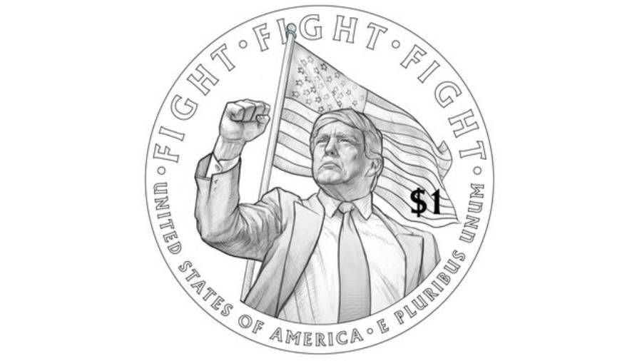 ويُظهر أحد التصاميم صورة لترامب على الوجه الأول للعملة النقدية، بينما يحمل الوجه الثاني صورة أخرى له رافعا قبضته أمام علم أمريكي مع عبارة «حارب حارب حارب».