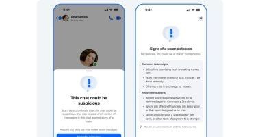وتختبر الشركة أيضًا أدوات متقدمة للكشف عن الاحتيال فى محادثات ماسنجر على الهواتف المحمولة، وعندما يتلقى المستخدم رسالة يُحتمل أن تكون احتيالية، سيظهر إشعار تحذيرى يُعلمه بأن الرسالة مشبوهة، وأنه يُمكنه إعادة توجيهها إلى ميتا لمراجعتها بواسطة الذكاء الاصطناعي.