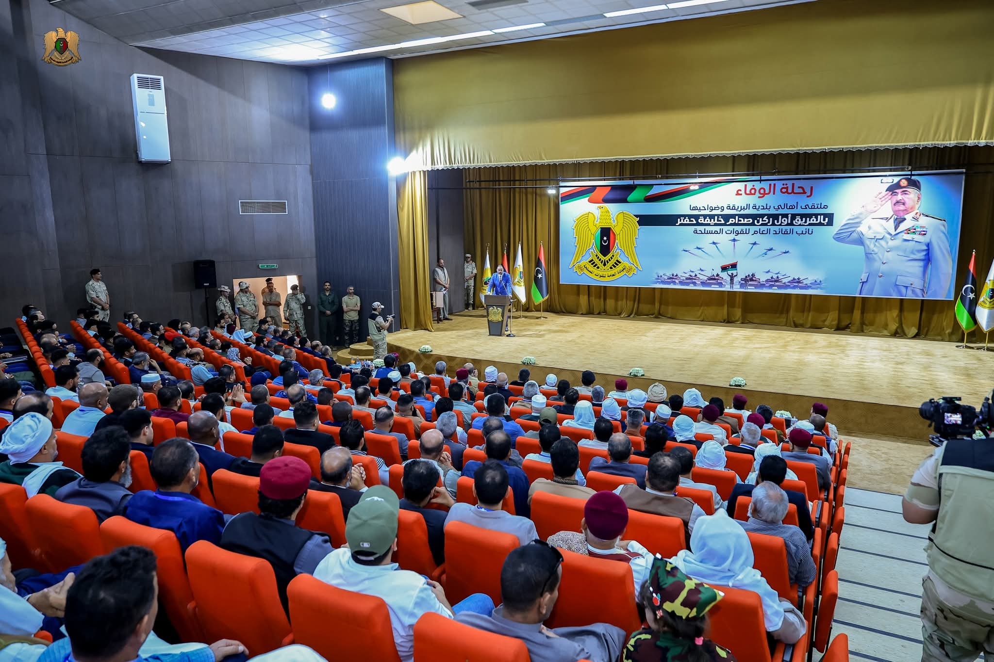 نقل الفريق أول ركن صدام حفتر تحيات القائد العام المشير خليفة حفتر، مؤكّدًا تقديره لما تمثّله قبائل البريقة ومكوناتها الاجتماعية من قيم وطنية راسخة، وللتضحيات والبطولات التي قدّمها أبناؤها والتي ستظل شاهدة على إخلاصهم للوطن.
