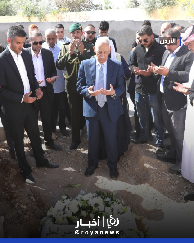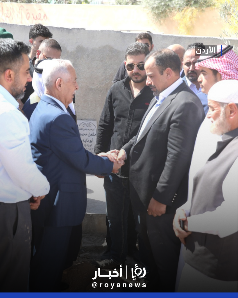 مندوبًا عن جلالة الملك عبدالله الثاني وسمو الأمير الحسين بن عبدالله الثاني، ولي العهد، شارك رئيس الديوان الملكي الهاشمي يوسف حسن العيسوي، اليوم الجمعة، في تشييع جثمان المرحوم الشاب فواز محمد أبو تايه، الذي ووري الثرى في مقبرة سحاب الإسلامية.