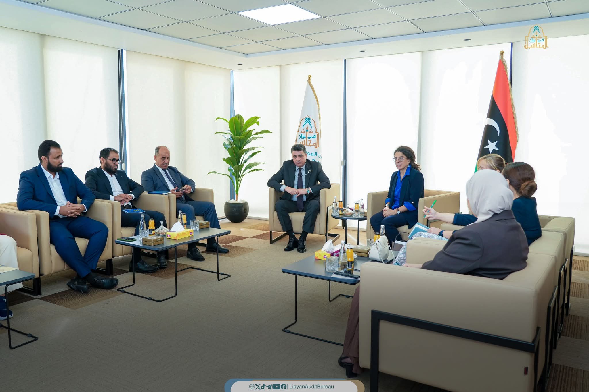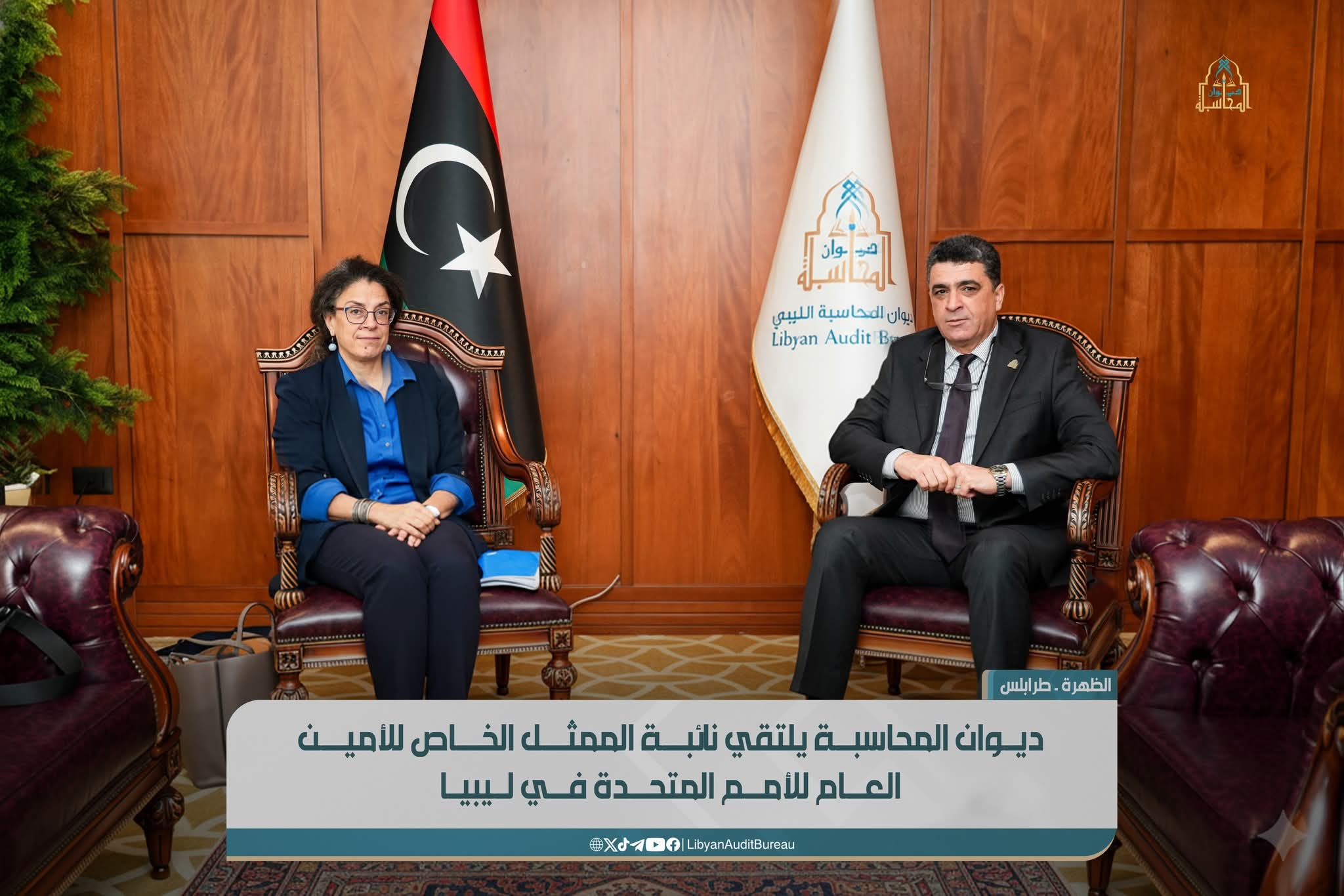 ليبيا – التقى خالد شكشك رئيس ديوان المحاسبة ستيفاني خوري نائبة الممثل الخاص للأمين العام للأمم المتحدة للشؤون السياسية والوفد المرافق لها، بحضور عدد من مديري الإدارات والمكاتب بالديوان، وذلك لبحث أدوار الرقابة وتعزيز الحوكمة.