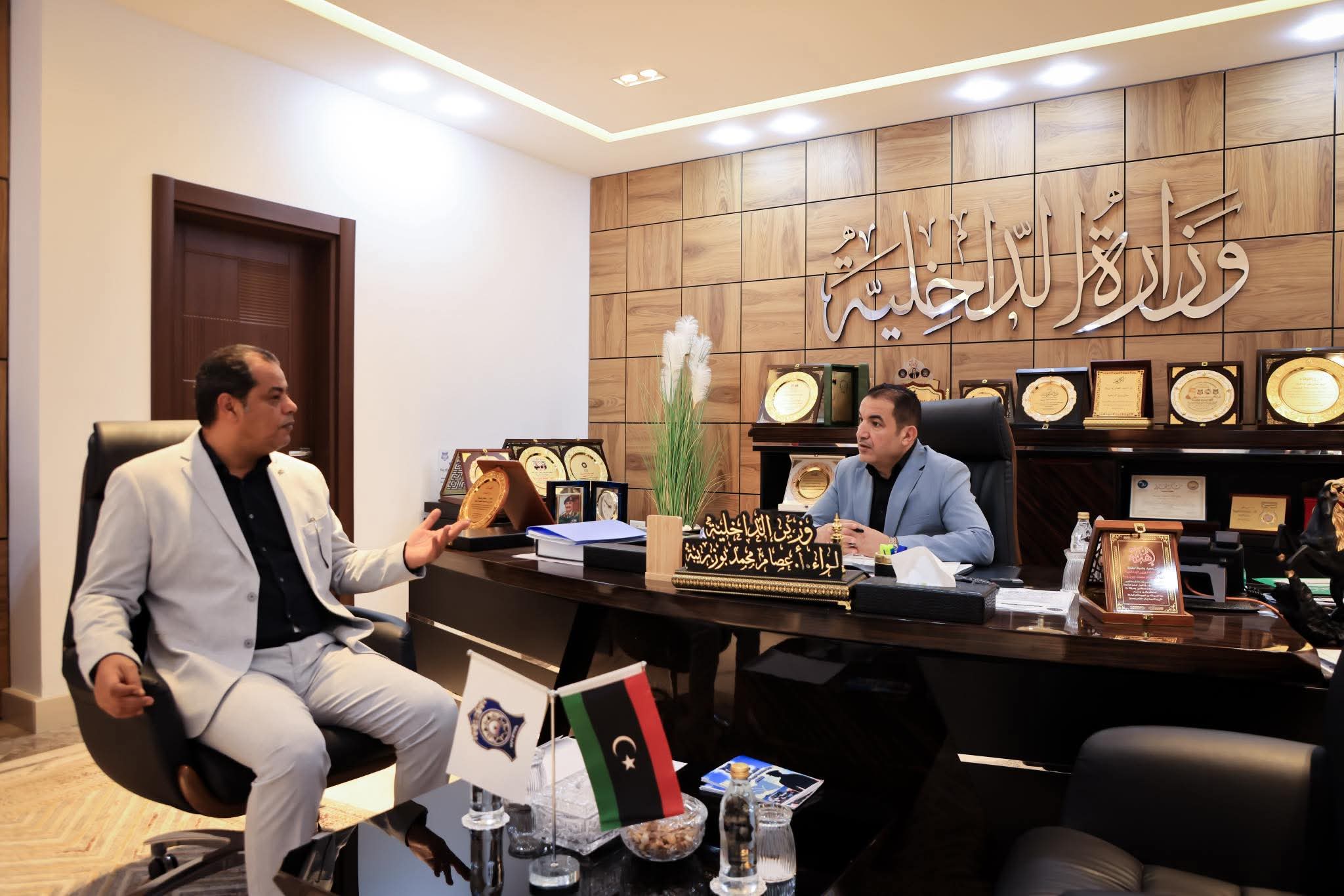 ليبيا – اجتمع وزير الداخلية بحكومة الاستقرار اللواء عصام أبو زريبة مع رئيس جهاز مكافحة المخدرات والمؤثرات العقلية اللواء عادل عبد العزيز، لبحث الخطط والإجراءات الأمنية لمواجهة آفة المخدرات والتصدي لشبكات التهريب والترويج، وذلك وفقًا للمكتب الإعلامي لوزارة الداخلية.