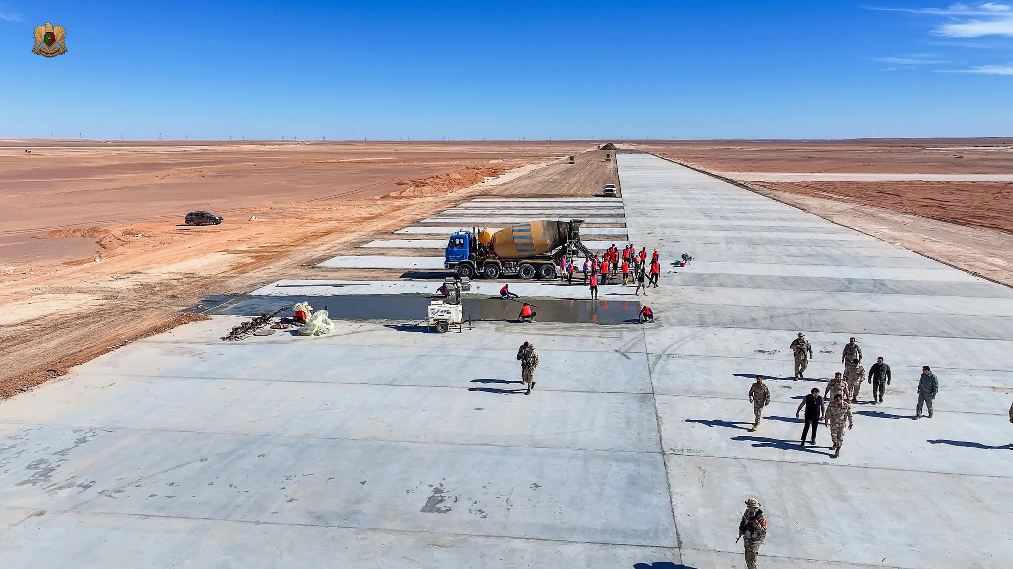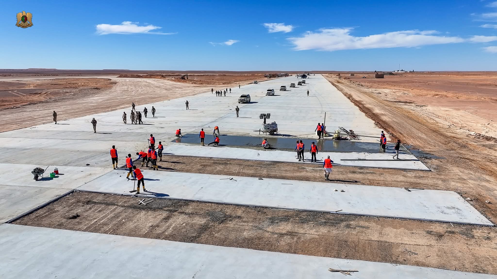 شهدت المراحل الأولى للمشروع، بحسب المكتب الإعلامي للقيادة العامة للجيش، إنجاز أعمال البنية التحتية الأساسية، والبدء في تنفيذ طبقات الخرسانة المسلحة النهائية.