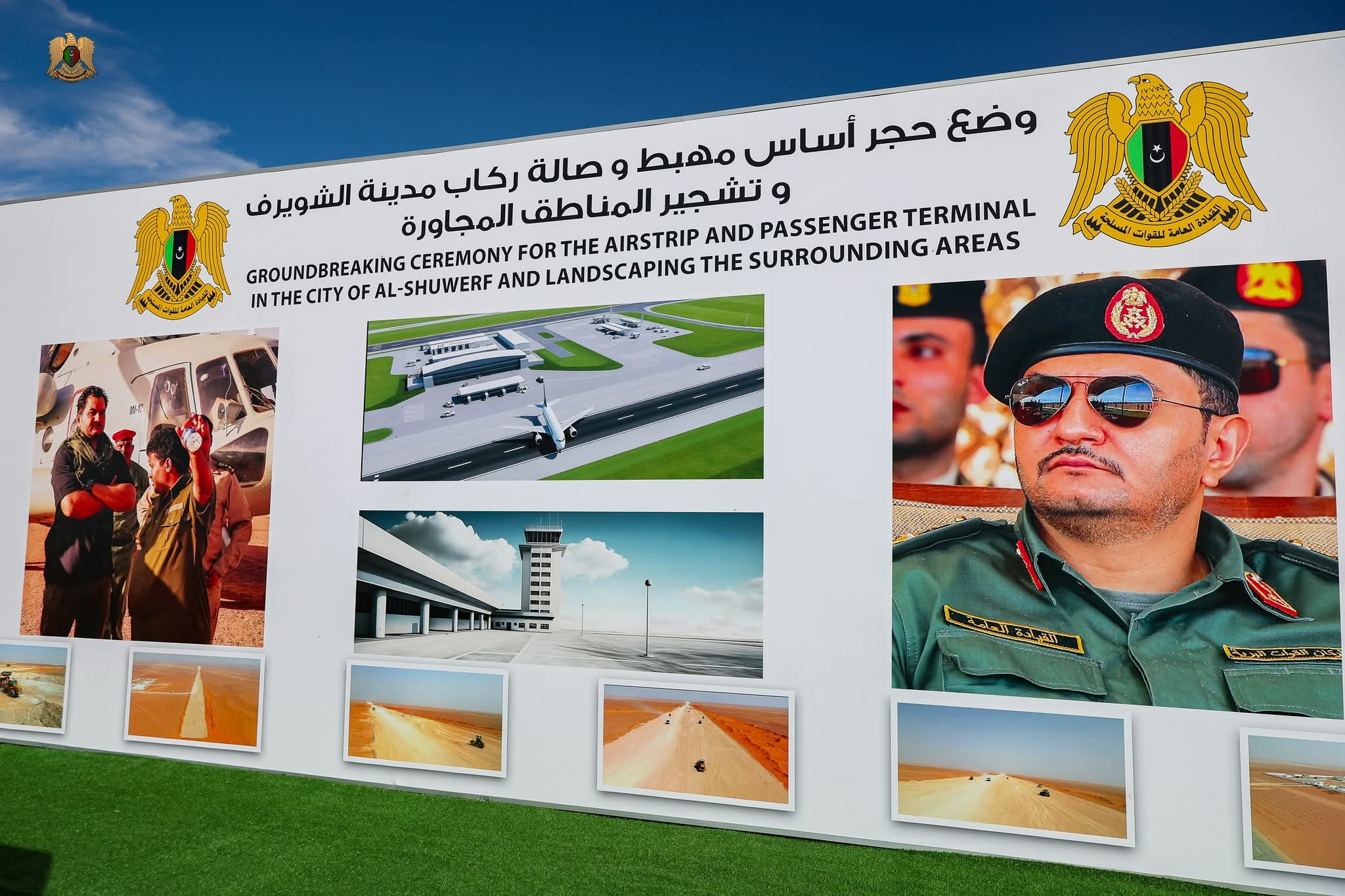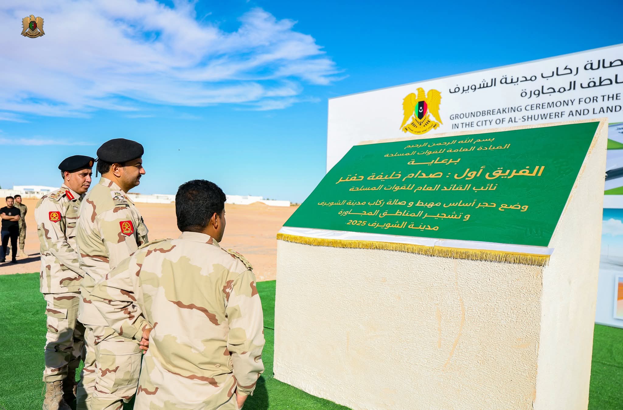 ليبيا – وضع الفريق أول ركن صدام حفتر، نائب القائد العام للقوات المسلحة، حجر الأساس لمشروع إنشاء مطار الشويرف الدولي، الذي يقام على مساحة تقدّر بـ258 هكتار، ويضم مهبطًا وثلاثة مداخل للطيران وساحتين لحركة الطائرات، إضافة إلى مبنى للركاب ومستودعات للشحن الجوي وكافة المرافق الخدمية والتجارية.
