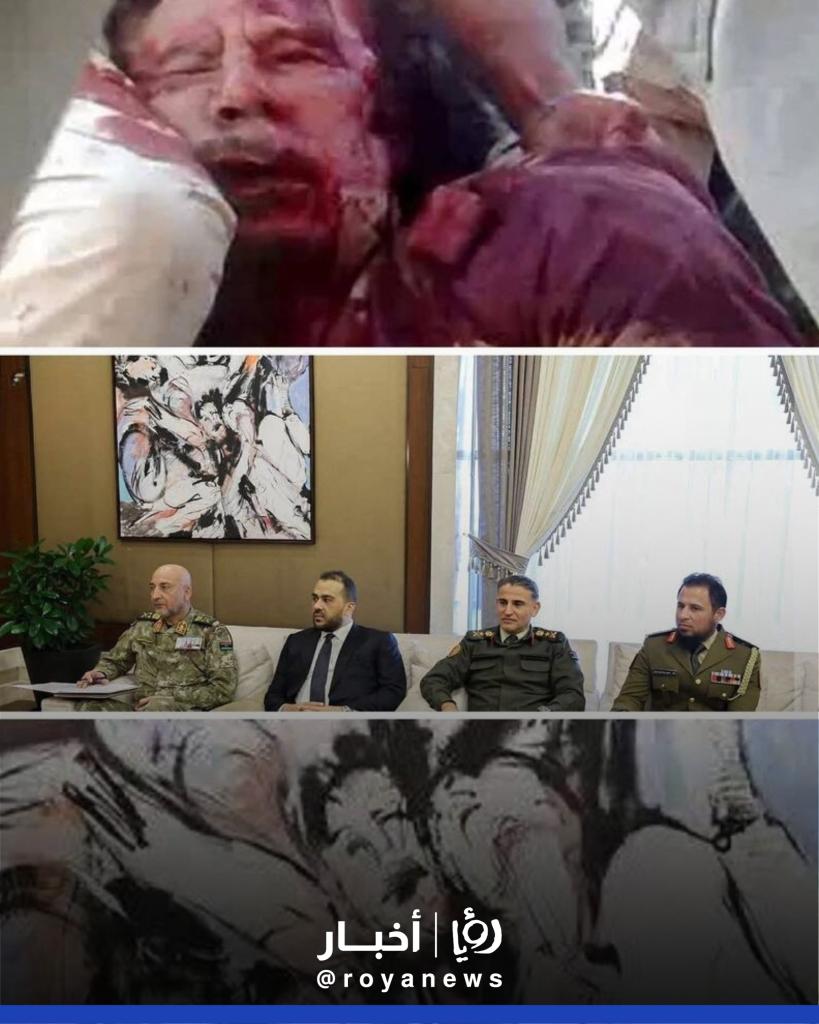 وأظهرت الصورة ما يعتقد أنه تجسيد للحظات الأخيرة في حياة الزعيم الراحل معمر القذافي، وهي لحظة لا تزال تمثل ذاكرة دموية وانقسامية في تاريخ ليبيا الحديث.
