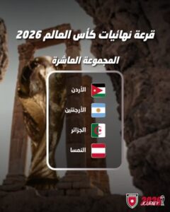 وأسفرت القرعة عن مواجهة عربية بين منتخبي الجزائر والأردن في المجموعة العاشرة لمونديال 2026، التي يترأسها المنتخب الأرجنتيني بطل العالم، إضافة إلى النمسا.