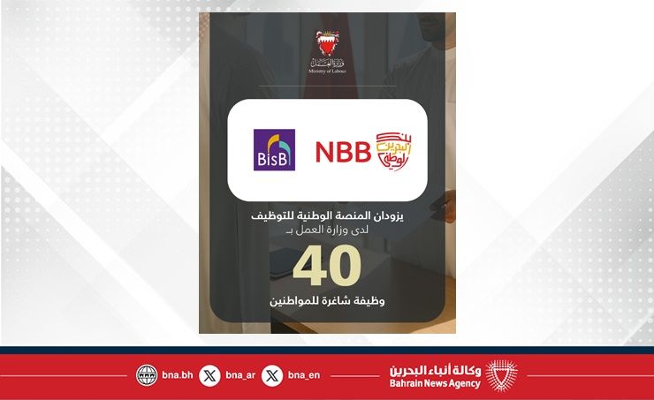 المنامة في 14 أكتوبر/ بنا / في إطار مواصلة الجهود الوطنية الرامية إلى توفير فرص عمل نوعية للمواطنين وتمكينهم من الإسهام الفاعل في مسيرة التنمية، أعلن سعادة السيد يوسف بن عبدالحسين خلف وزير الشؤون القانونية وزير العمل بالوكالة أن بنك البحرين الوطني وبنك البحرين الاسلامي قاما بتزويد المنصة الوطنية للتوظيف التابعة لوزارة العمل بـ 40 وظيفة شاغرة مخصصة للمواطنين.