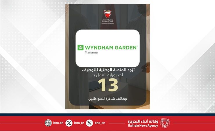 المنامة في 16 نوفمبر / بنا / في إطار تنفيذ توجيهات صاحب السمو الملكي الأمير سلمان بن حمد آل خليفة ولي العهد رئيس مجلس الوزراء حفظه الله، بعرض 3 فرص وظيفية لكل باحث عن عمل مسجل لدى وزارة العمل، ويندام جاردن يزود المنصة الوطنية للتوظيف بـ 13 وظيفة شاغرة للمواطنين.