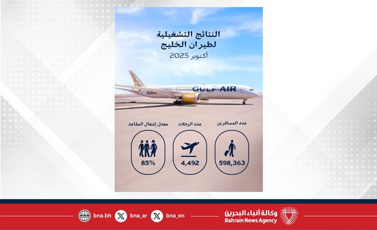 المنامة في 02 ديسمبر/ بنا / سجلت شركة طيران الخليج، الناقلة الوطنية لمملكة البحرين، أداءً تشغيليًا قويًا خلال شهر أكتوبر 2025، مدعومًا بالإقبال الكبير على السفر عبر شبكة وجهاتها المتنامية.