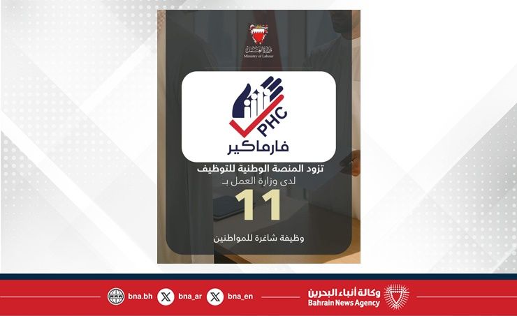 المنامة في 07 ديسمبر/ بنا /في إطار تنفيذ توجيهات صاحب السمو الملكي الأمير سلمان بن حمد آل خليفة ولي العهد رئيس مجلس الوزراء حفظه الله، بعرض 3 فرص وظيفية لكل باحث عن عمل مسجل لدى وزارة العمل، قامت صيدلية فارما كير بتزويد المنصة الوطنية للتوظيف بـ 11 وظيفة شاغرة للمواطنين.