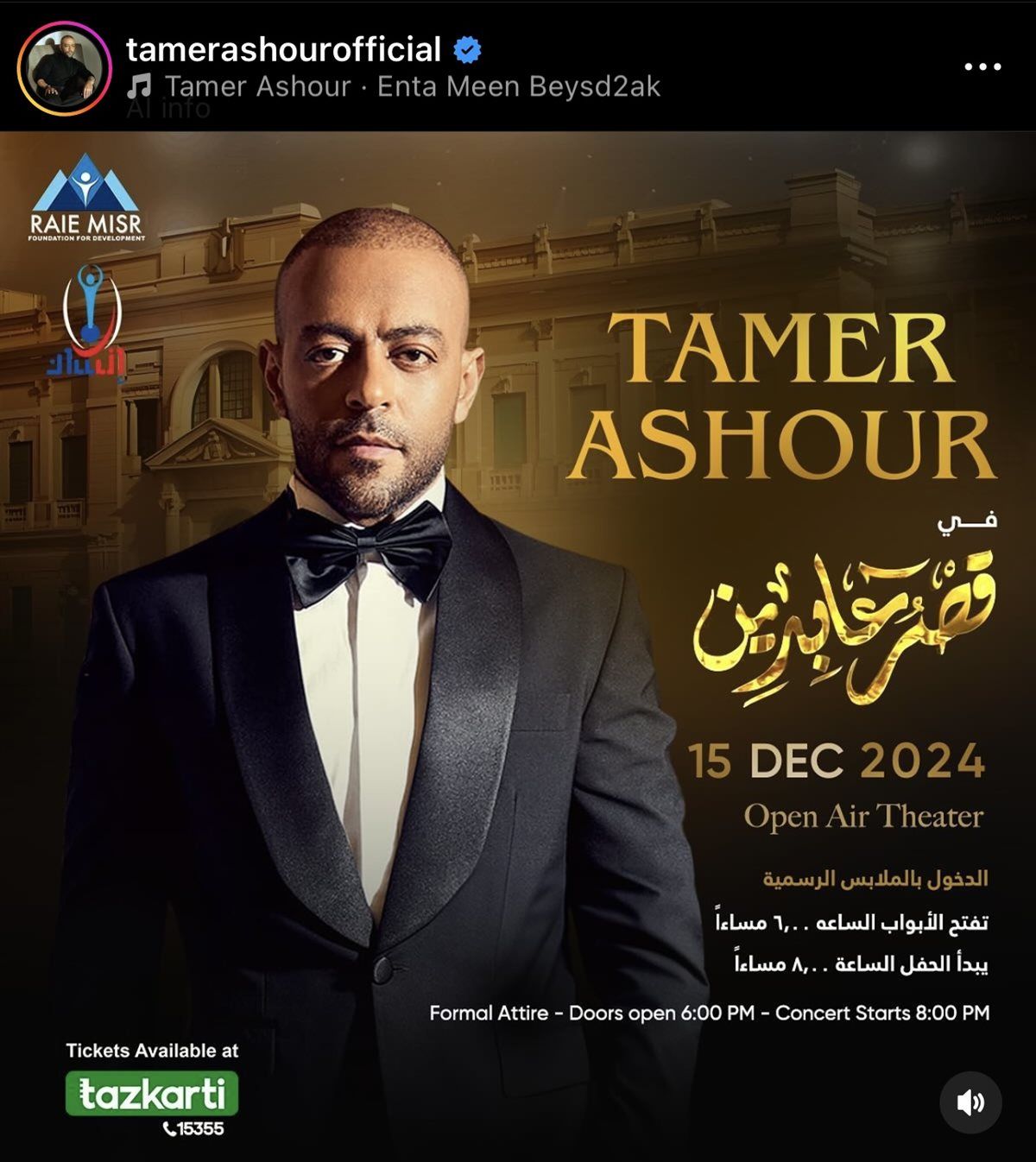 تفاصيل حفل تامر عاشور بقصر عابدين
