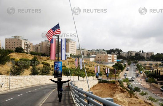 كما تزينت شوارع القدس بالأعلام الأمريكية استعدادا لوصول ترامب .