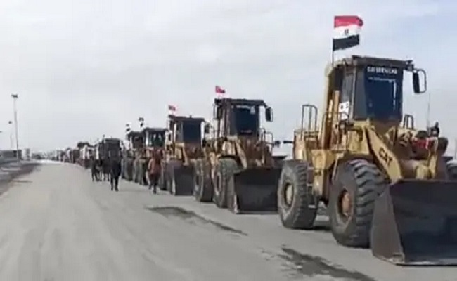 غزة – بدأت مساء امس السبت، دخول شحنات الآليات الثقيلة المصرية إلى قطاع غزة.